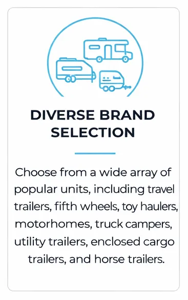 With years of experience in the industry, we proudly offer a wide selection of travel trailers, fifth wheels, toy haulers, motorhomes, truck campers, utility trailers, enclosed cargo trailers, and horse trailers to suit every lifestyle, need, and budget.